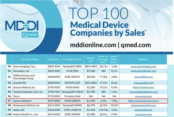 近日,医疗器械行业权威网站Medical Device+Diagnostic Industry(MD+DI)发布了2023年全球医疗器械企业TOP100榜单。今年会jinnianhui金字招牌生物连续两年上榜全球百强,也是此次榜单唯二主营业务是体外诊断的中国企业。